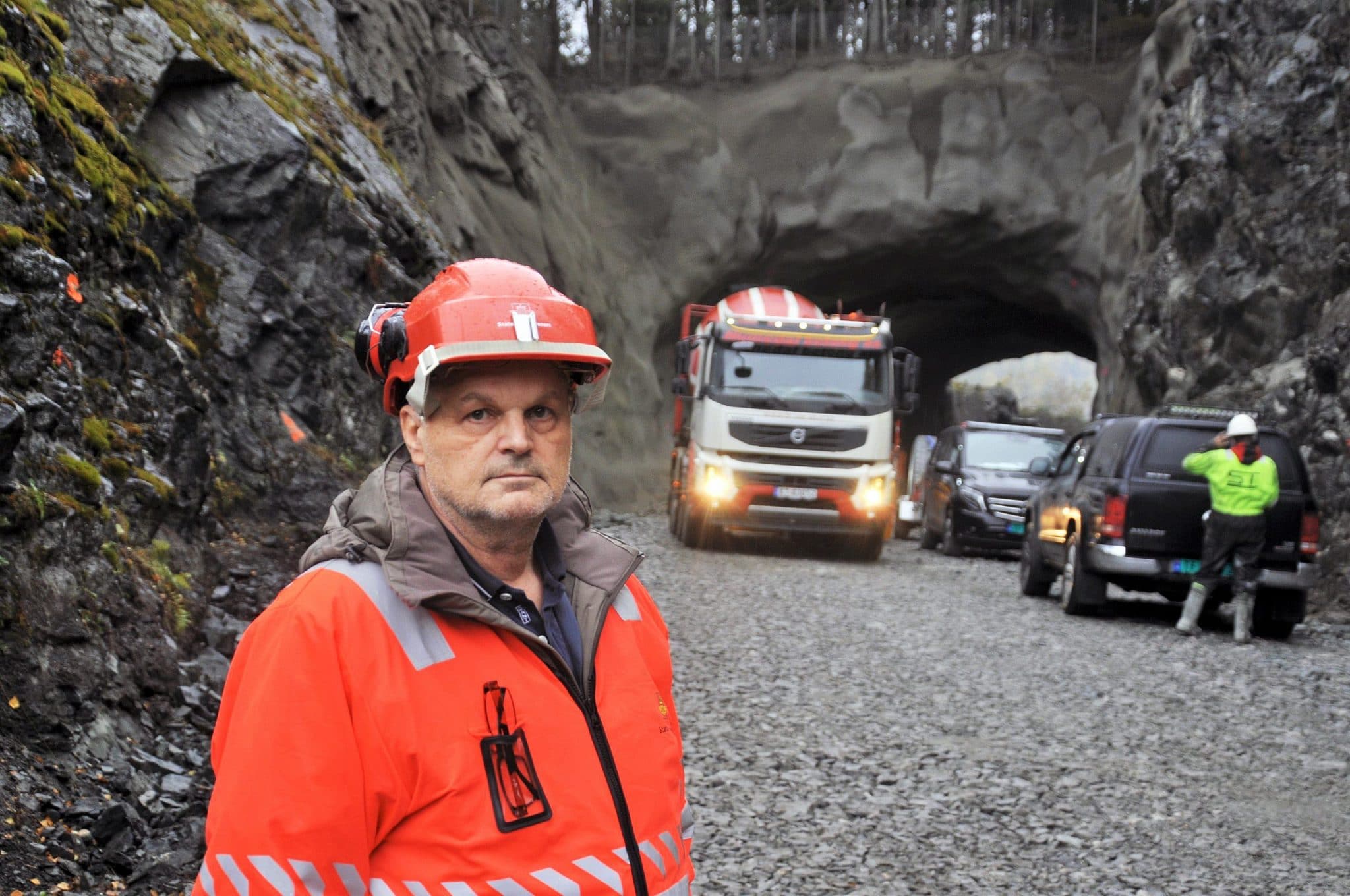 Nickolai-Thomas Seljesæther Berg er byggeleder for tunneljobben som Mesta utfører. Før tunnelen nå vann- og frostsikres var spesialhunder fra firmaet Eksplosivhunder, tidligere Forsvarets, i tunnelen for å snuse opp rester av gamle eksplosiver.