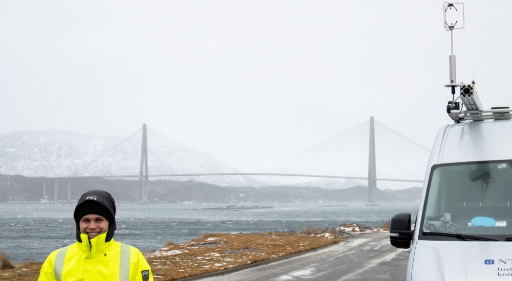 Sebastian Reymert som er vinner av Tom A. Wyatt Best Paper Award for 2024, har blant annet utført vindmålinger på Helgelandsbrua for å registrere hvordan vind påvirker kjøreopplevelsen. Foto: NTNU/Institutt for konstruksjonsteknikk