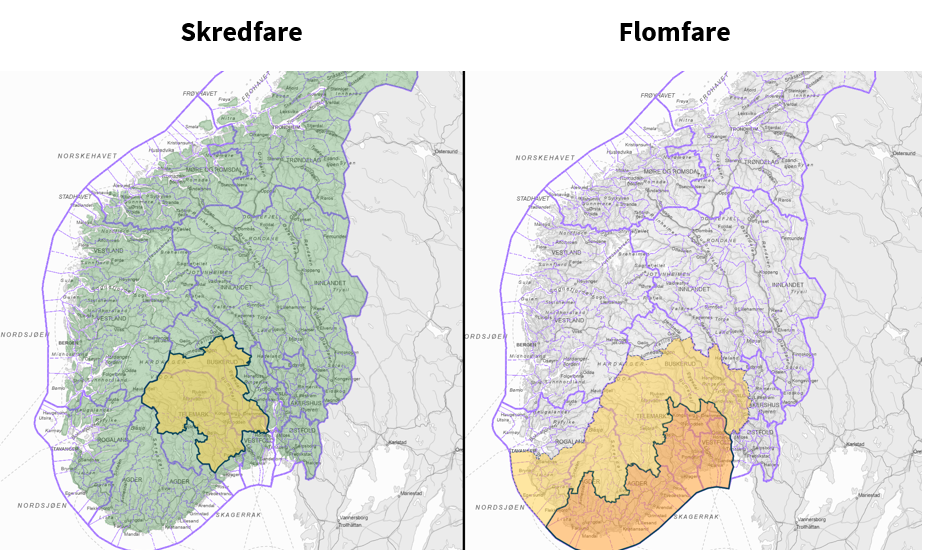 Det er forventet at flomfaren avtar søndag morgen, og skredfaren lørdag ettermiddag.