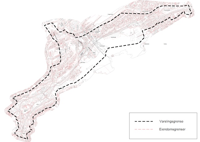 Området er i Asker kommune, og Bærum kommune, innenfor området vist på kartet (se høyoppløst versjon av kart her). Varslingsgrensen for planen er større enn det faktiske arealet som blir berørt.