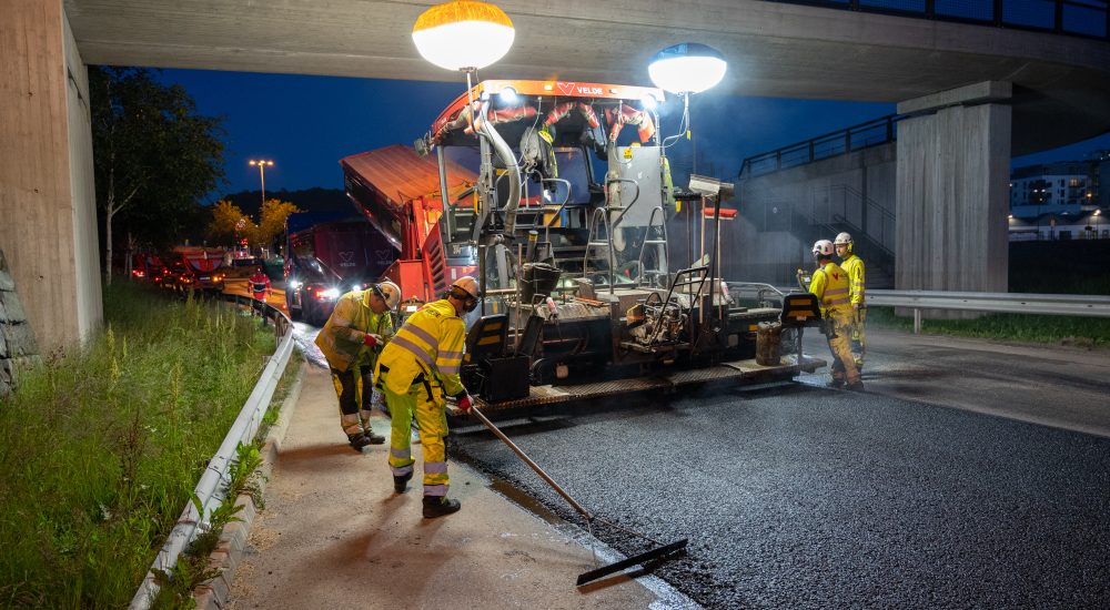 I år skal Statens vegvesen legge asfalt på riks- og europaveiene til en verdi av cirka 1400 millioner kroner. Asfaltsesongen starter så snart telen er ute av bakken, og lengst i sør i landet ventes asfalteringen å være i gang allerede i slutten av april. Foto: Bård Asle Nordbø/Statens vegvesen
